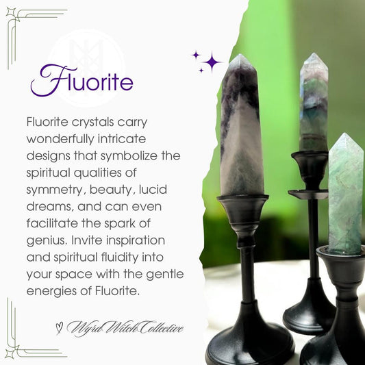 Rainbow Fluorite Crystal Tower Vintage Candelabra Stand + Natural Fluorite Gemstone Polished Tower Display Specimen Boho Witch Pagan Decor