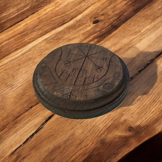 Icelandic Magic Vegvisir Wooden Altar Plate + Rune Décor + Norse Witch Pagan Altar Tool
