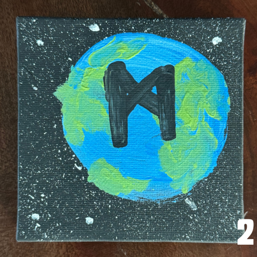 2 'Mannaz' Rune to symbolize mankind, Elli describes this painting as our Earth in space.